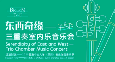 龙岗区2026年1月23日20:00,绽放时光——香港中文大学(深圳)音乐学院音乐季:《东西奇缘——三重奏室内乐音乐会》将在龙岗文化中心·音乐厅上演。