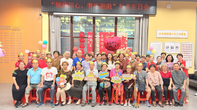为弘扬中华民族尊老敬老的传统美德,增强社区长者的归属感与幸福感,营造关爱老年人的社区氛围,5月26日,沙头角街道田心社区党群服务中心社工为辖区上半年生日的五十位寿星举办了一场温馨欢乐的集体生日会。活动以“情满田心,耆乐融融”为主题,邀请沙头角老协严格秘书长,田心老协范雪萍会长,田心社区党委副书记徐馨及其寿星家属共同参与,传递社区关怀,弘扬敬老传统。