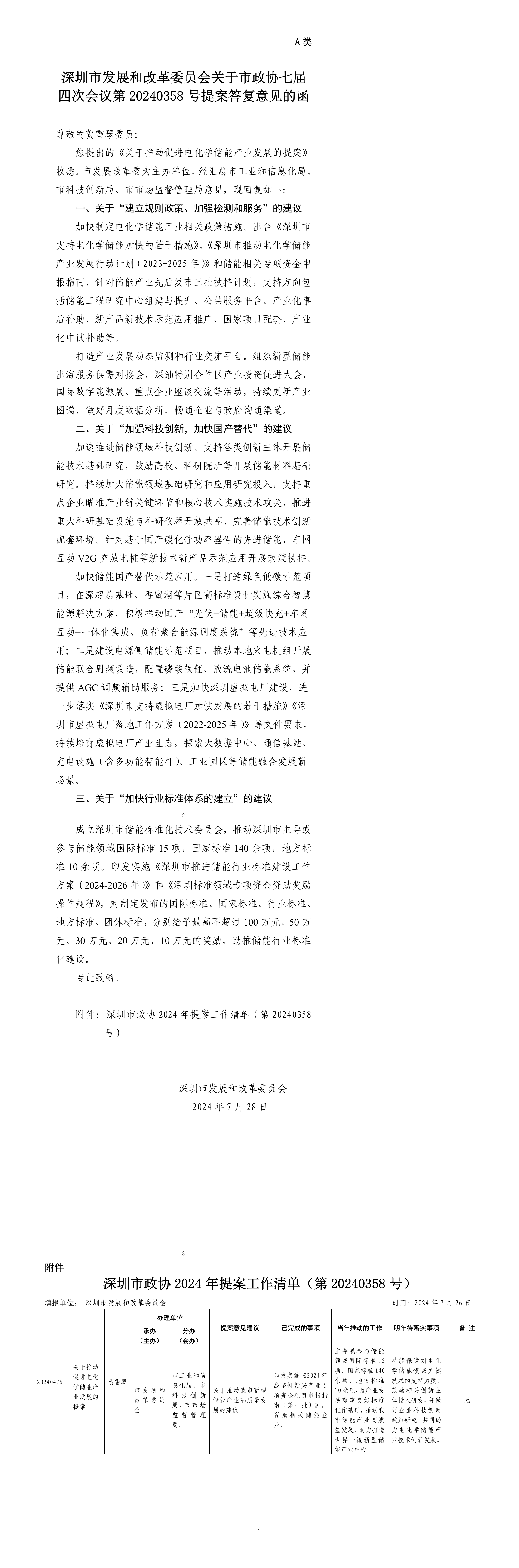 深圳市发展和改革委员会关于市政协七届四次会议第20240358号提案答复意见的函