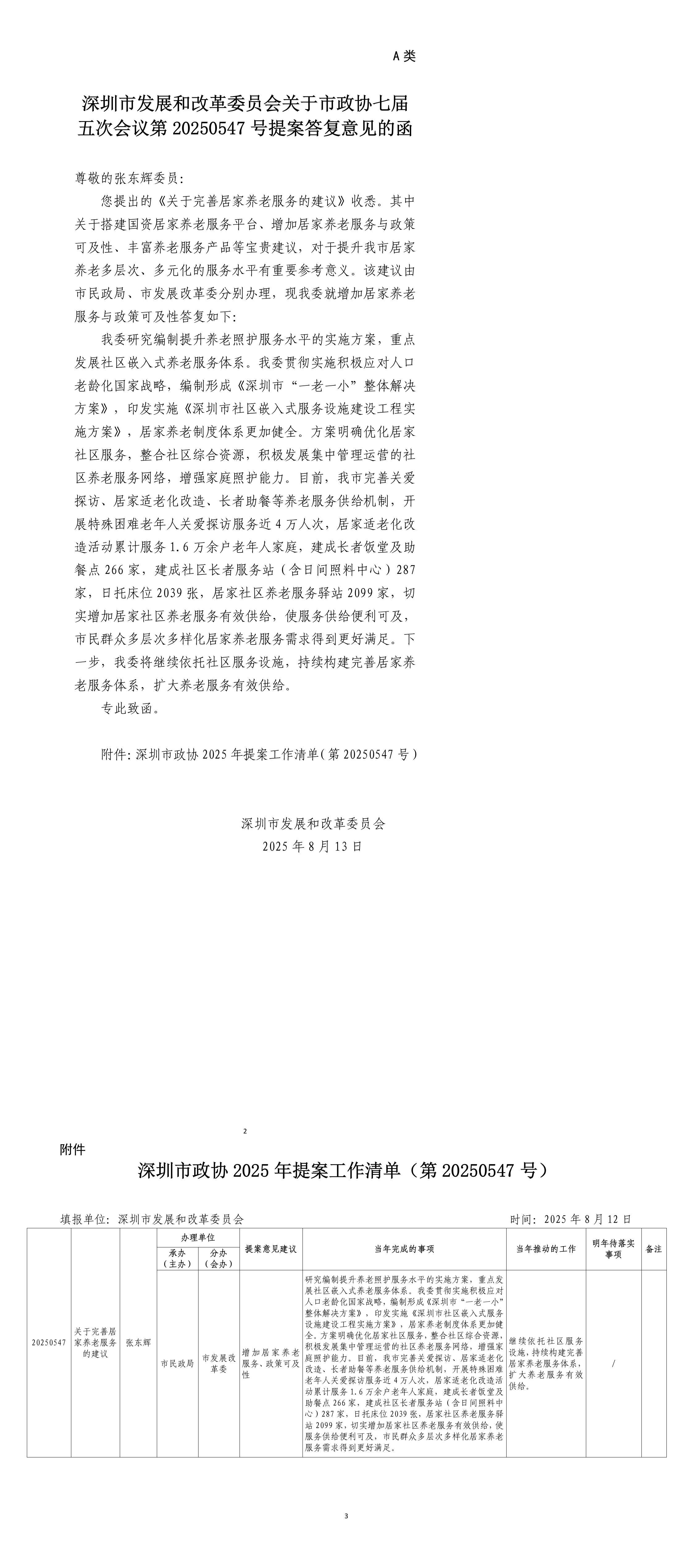 深圳市发展和改革委员会关于市政协七届五次会议第20250547号提案答复意见的函