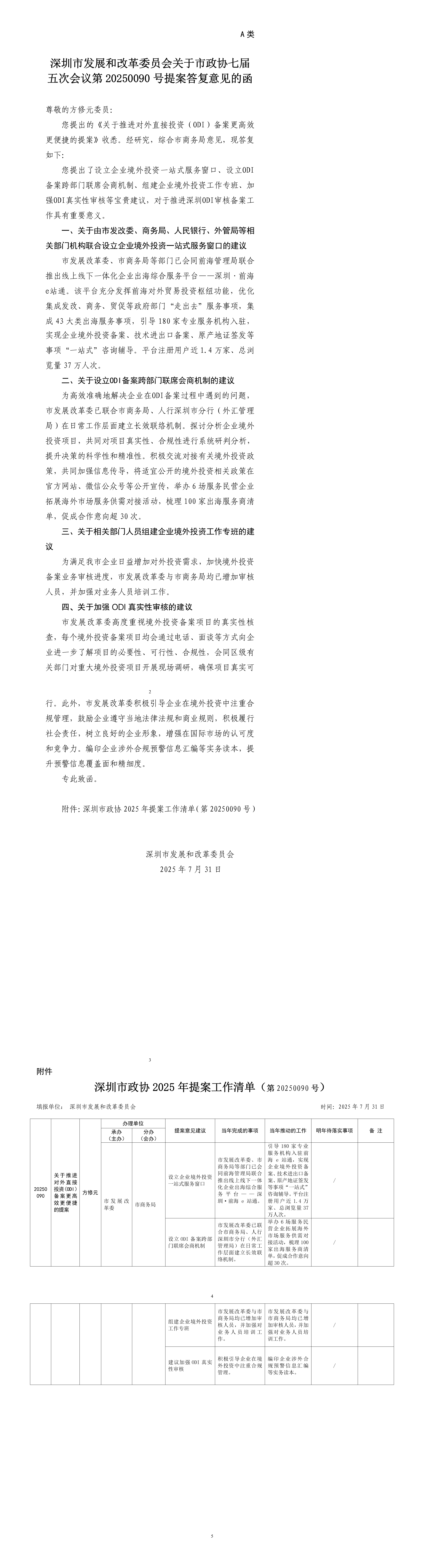 深圳市发展和改革委员会关于市政协七届五次会议第20250090号提案答复意见的函