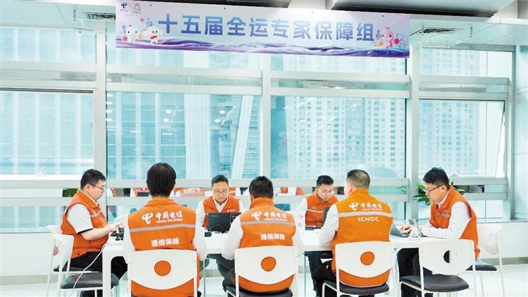 深圳电信十五运会专家保障组以扎实的技术实力,为赛事“零延时、零接触、零等待”提供有力保障。 深圳电信供图