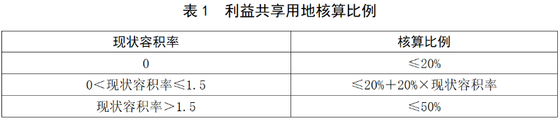 (三)本项目核定利益共享用地是指项目内上述第(一)项用地范围外的未完善征(转)地补偿手续规划建设用地,扣除上述第(二)项中非农建设用地指标和征地返还用地指标后的剩余土地,按照表1核算的留用土地规模。其中现状容积率为项目实施范围内现状建筑面积与规划建设用地面积的比值。