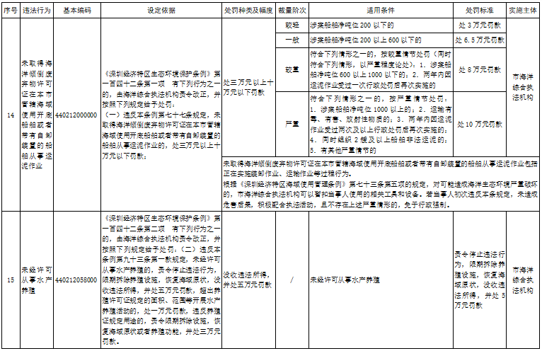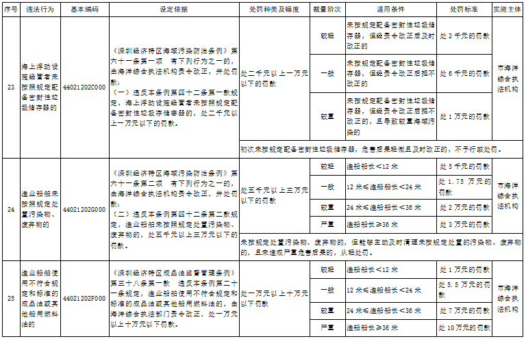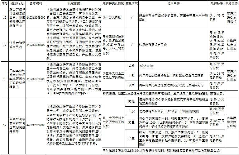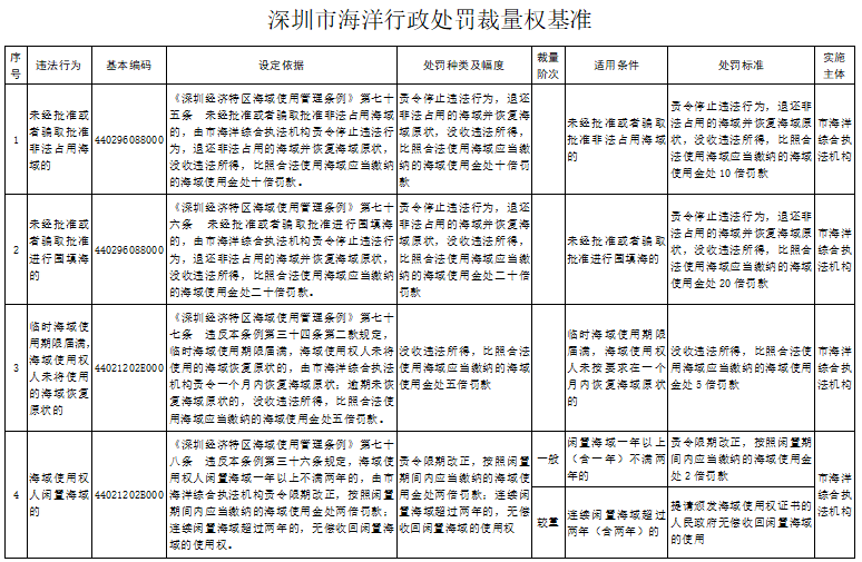二、《深圳市海洋行政处罚裁量权基准》(以下简称《裁量权基准》)适用于本市海洋综合执法机构行使海洋行政处罚自由裁量权的规范和监督。