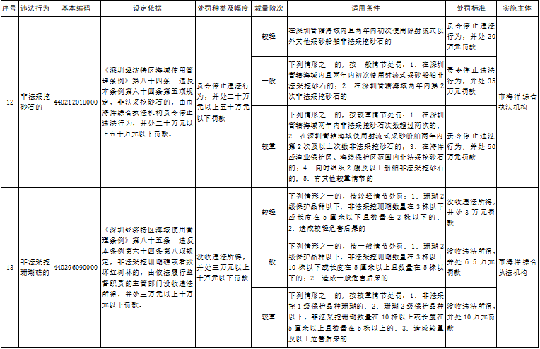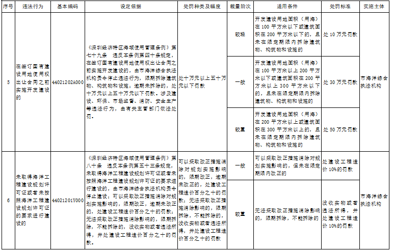 一、为进一步规范行使深圳海洋行政处罚自由裁量权,确保依法行政,保障公民、法人和其他组织的合法权利,根据《中华人民共和国行政处罚法》《广东省规范行政处罚自由裁量权规定》《深圳市规范行政处罚裁量权若干规定》等规定,结合本市海洋执法工作实际,制定本裁量权基准。