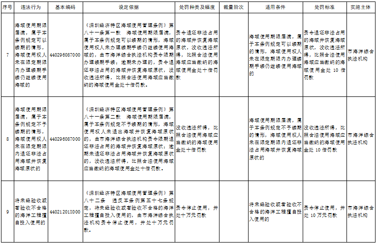十、本裁量权基准自2025年1月1日起施行,有效期5年。《深圳市海洋行政处罚自由裁量权标准》(深规划资源规〔2023〕2号)同时废止。