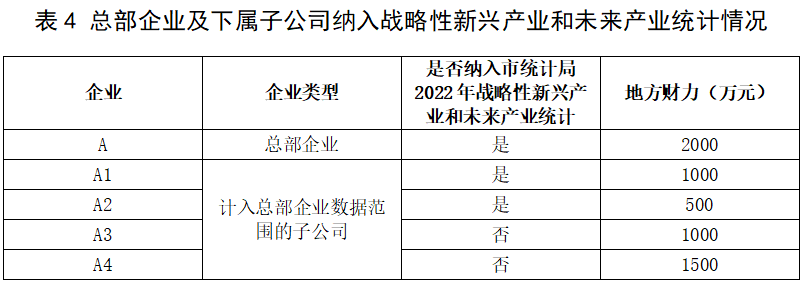 例如,总部企业A拥有A1、A2、A3、A4等4家子公司纳入总部企业数据范围,地方财力数据如下: