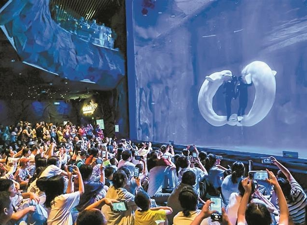 小梅沙海洋世界潜水员与白鲸共同演绎中秋节限定版《深海之吻》。 10月8日,记者获悉,2025年国庆中秋假期(10月1日—10月8日),深圳全市接待总游客920.26万人次,较...